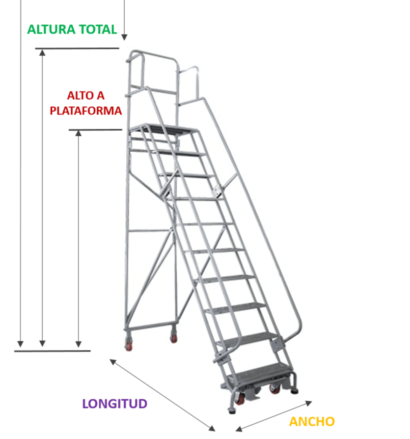 | MODELO | ESCALONES | ALTO A PLATAFORMA | ALTO TOTAL | ANCHO FRONTAL | ANCHO POSTRIOR |