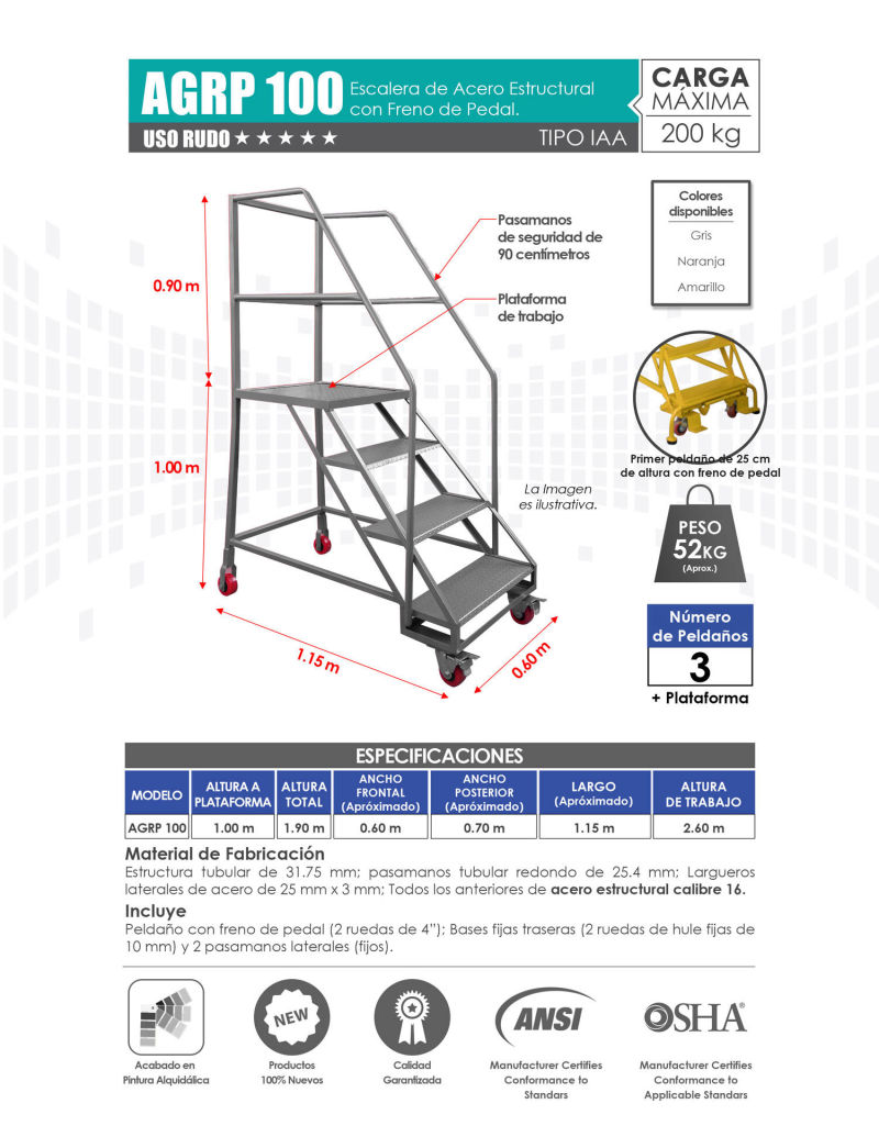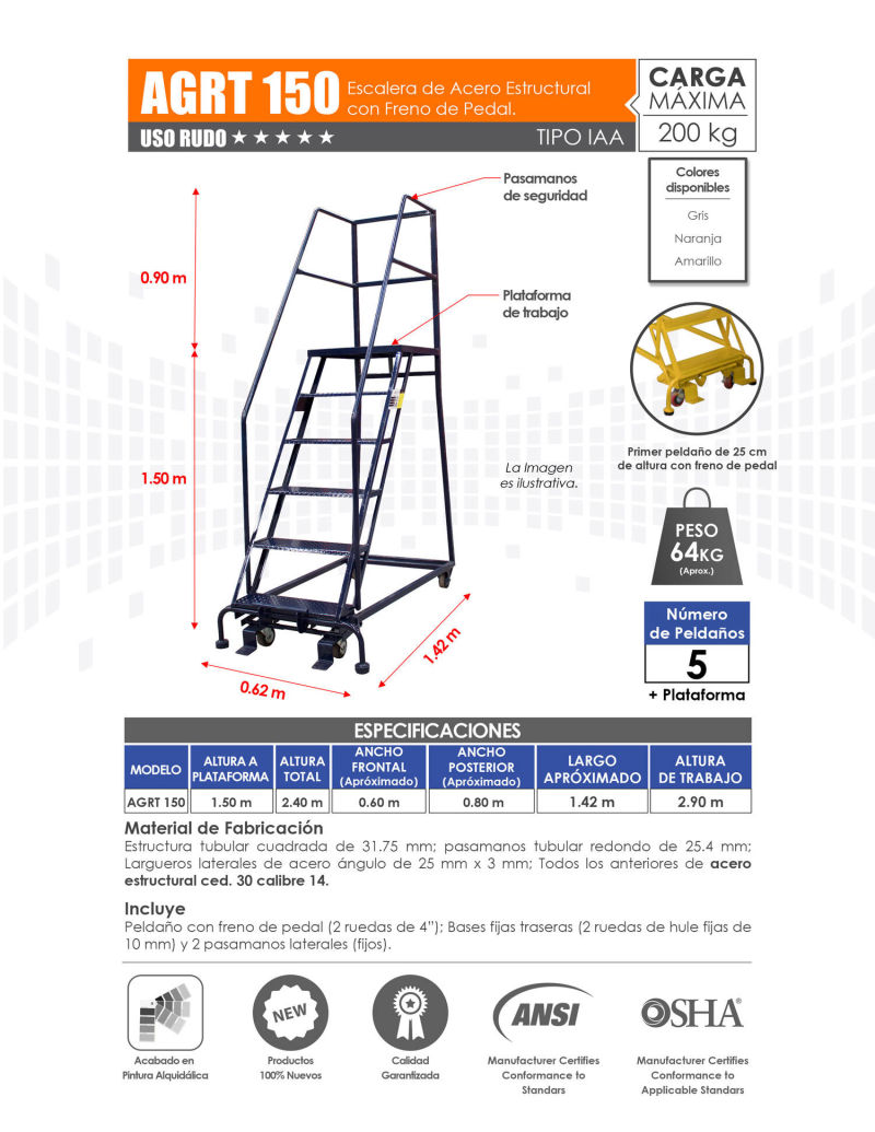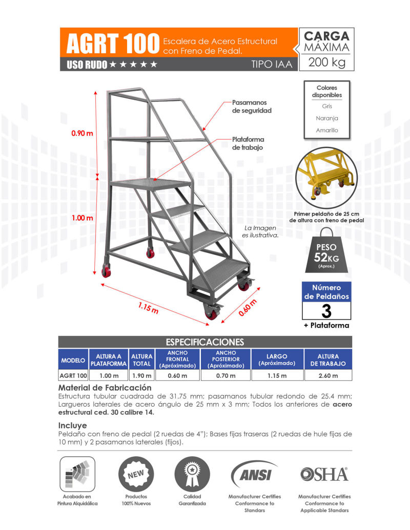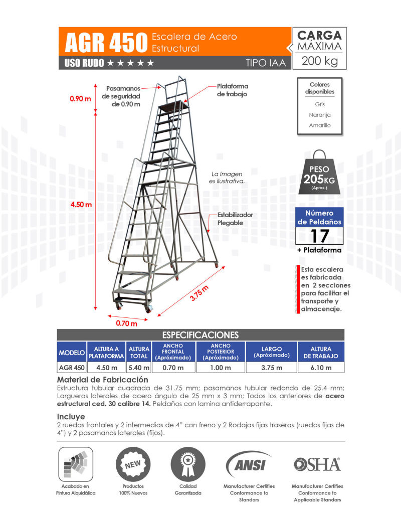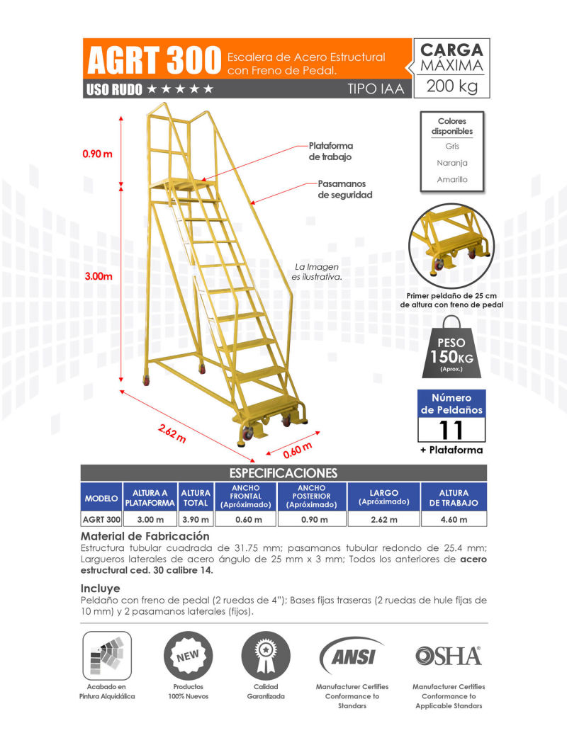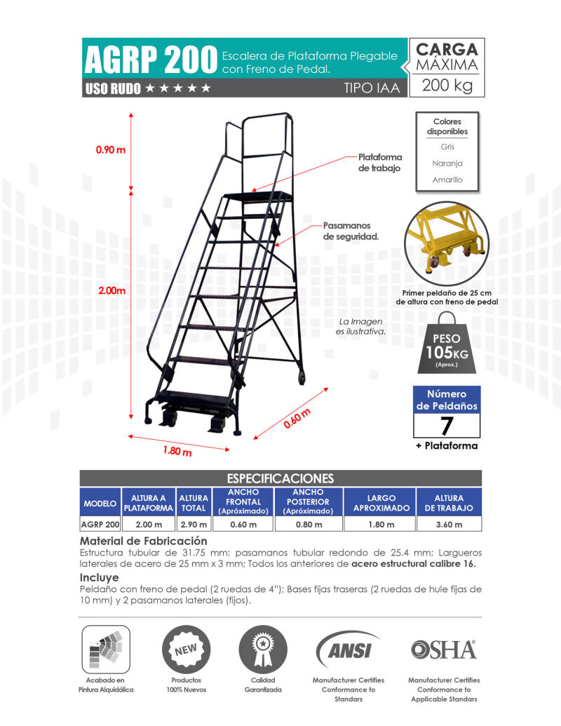 Venta de Escaleras de Plataforma para Almacén con Variedad de Alturas. Mayoreo y Menudeo.