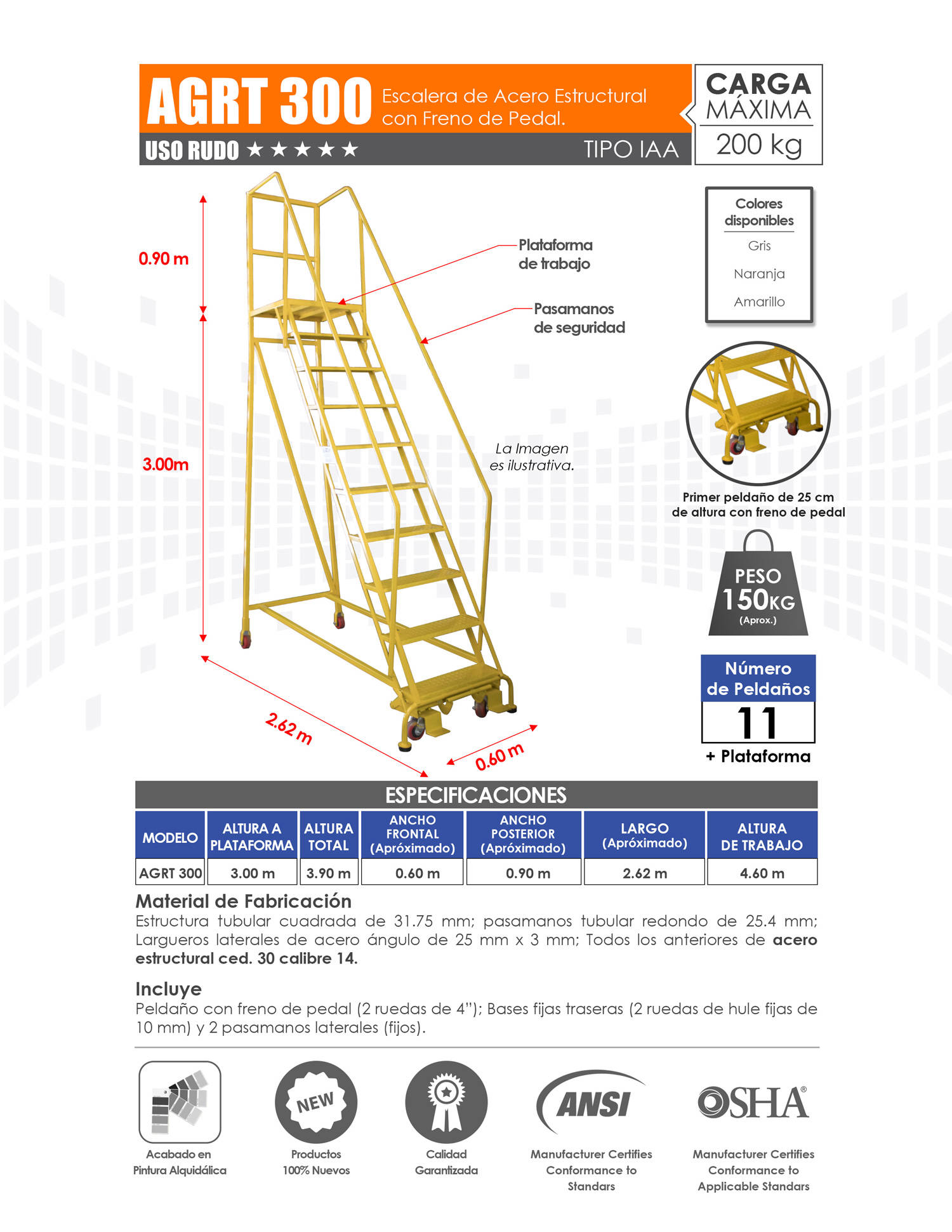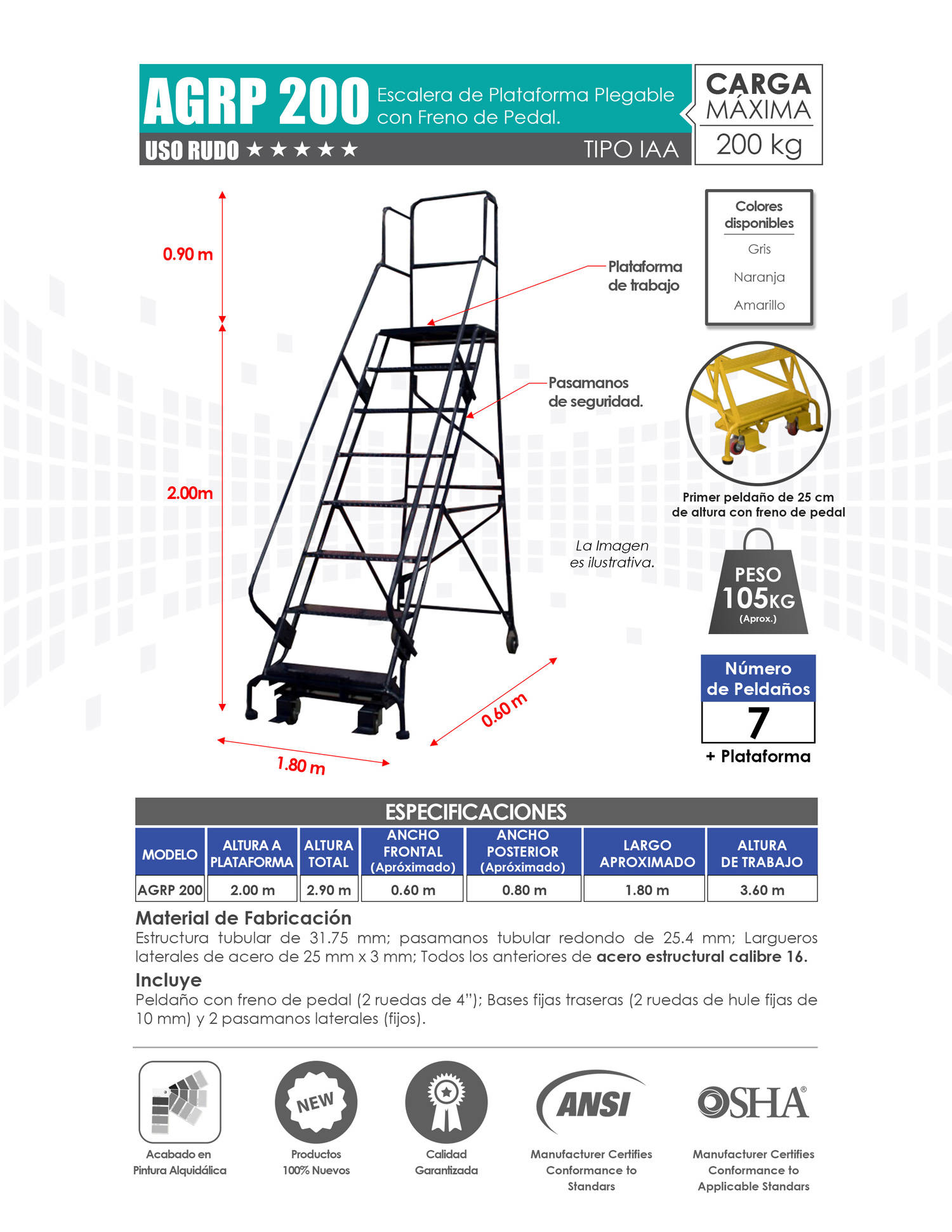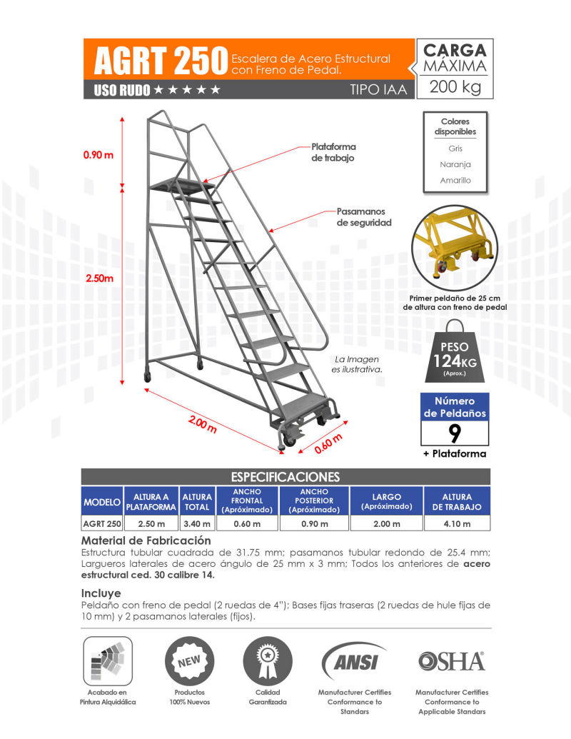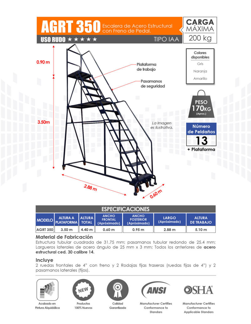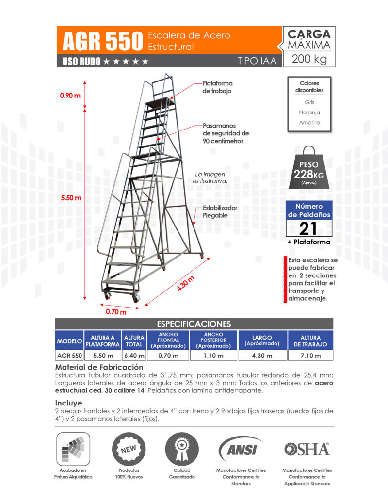 Venta de Escaleras de Plataforma para Almacén con Variedad de Alturas. Mayoreo y Menudeo.