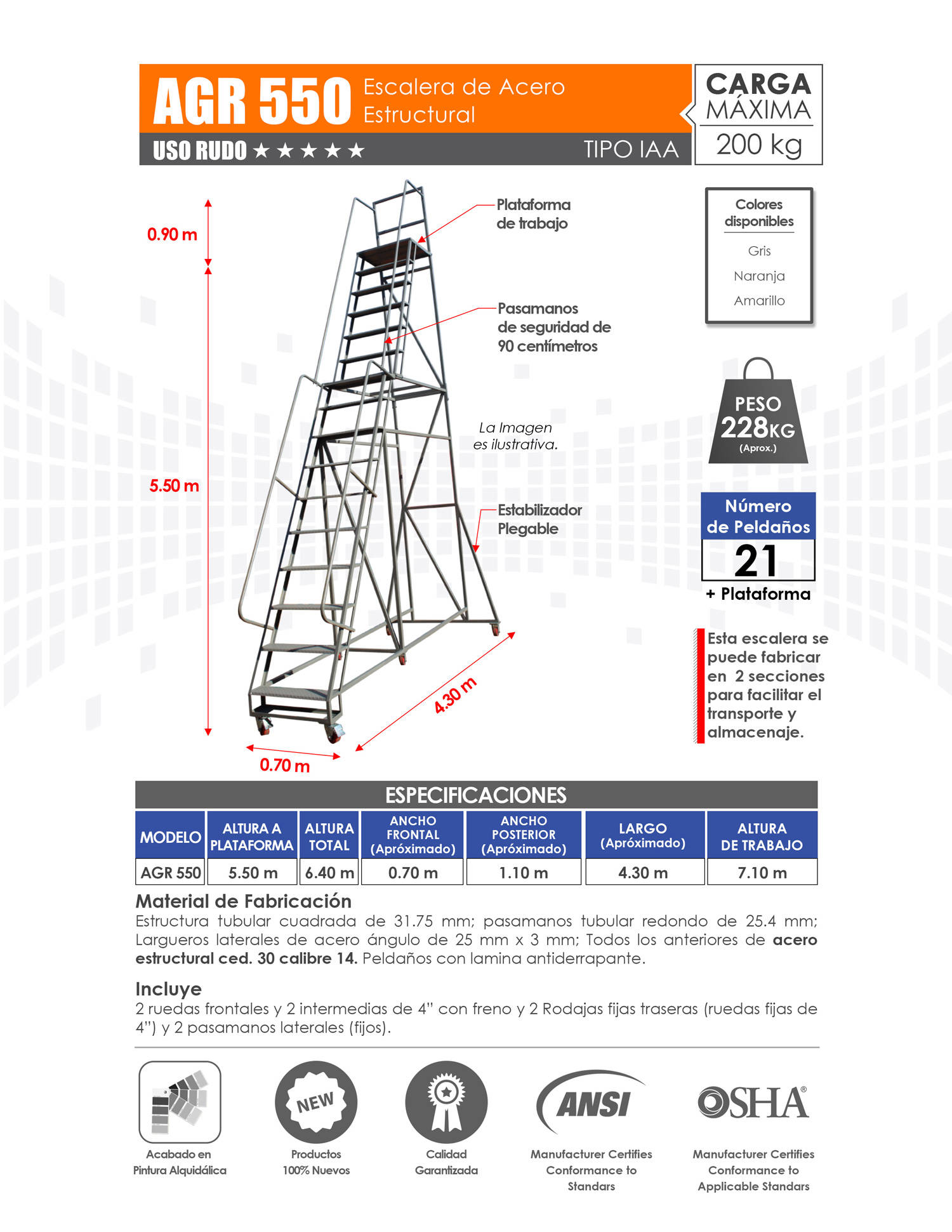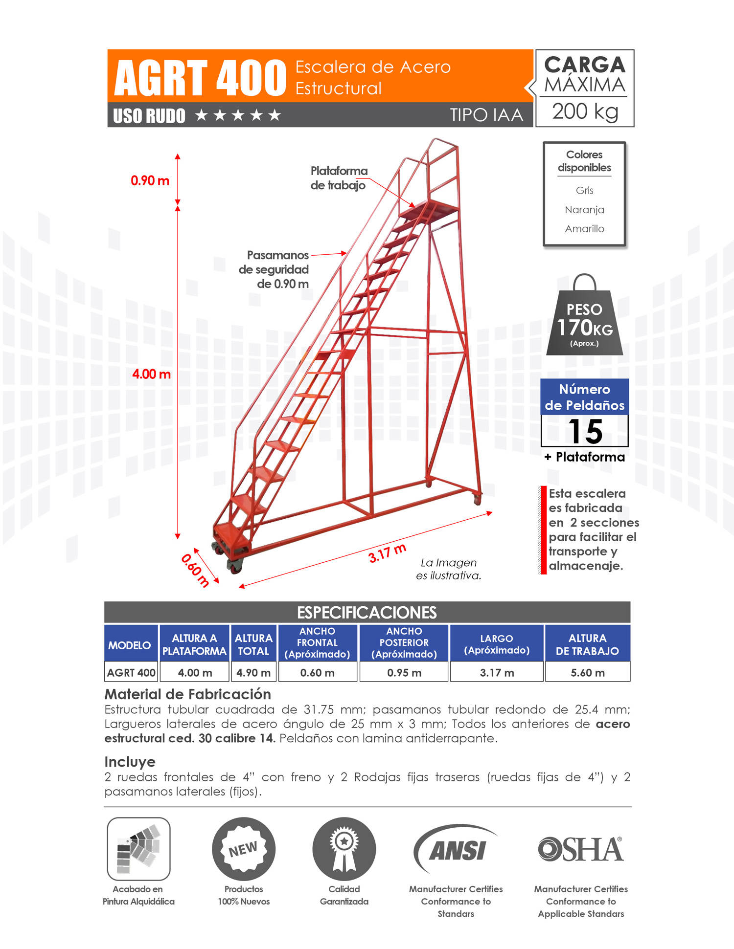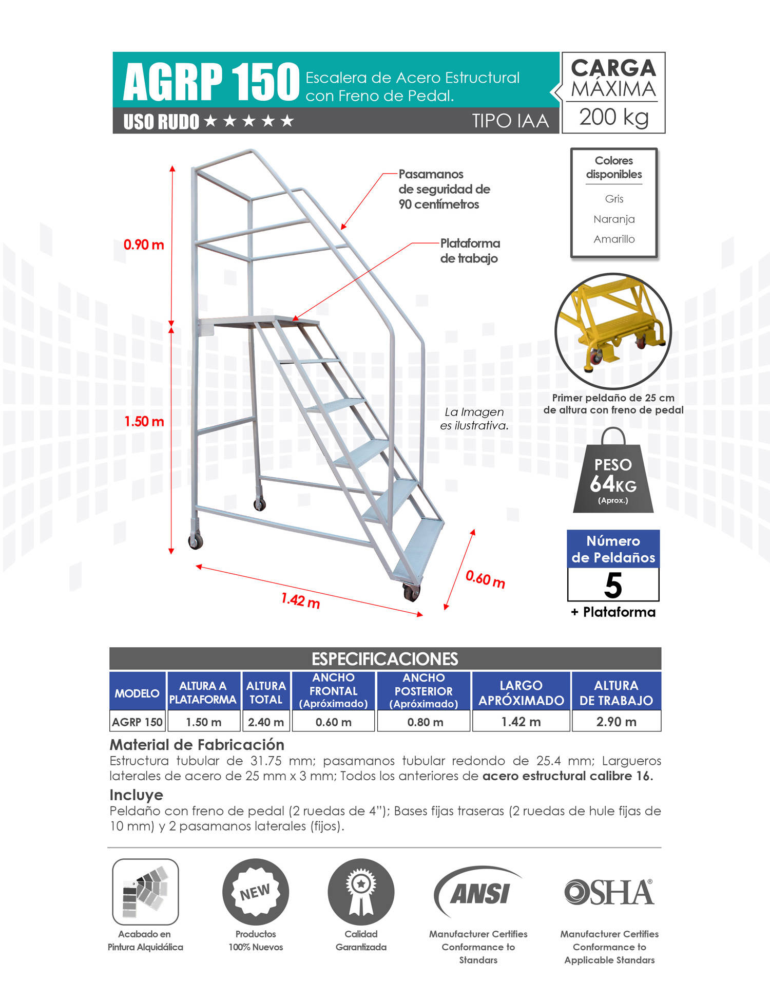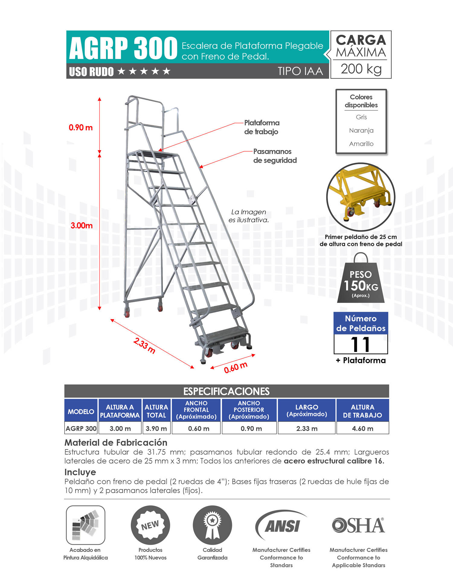 Venta de Escaleras de Plataforma para Almacén con Variedad de Alturas. Mayoreo y Menudeo.